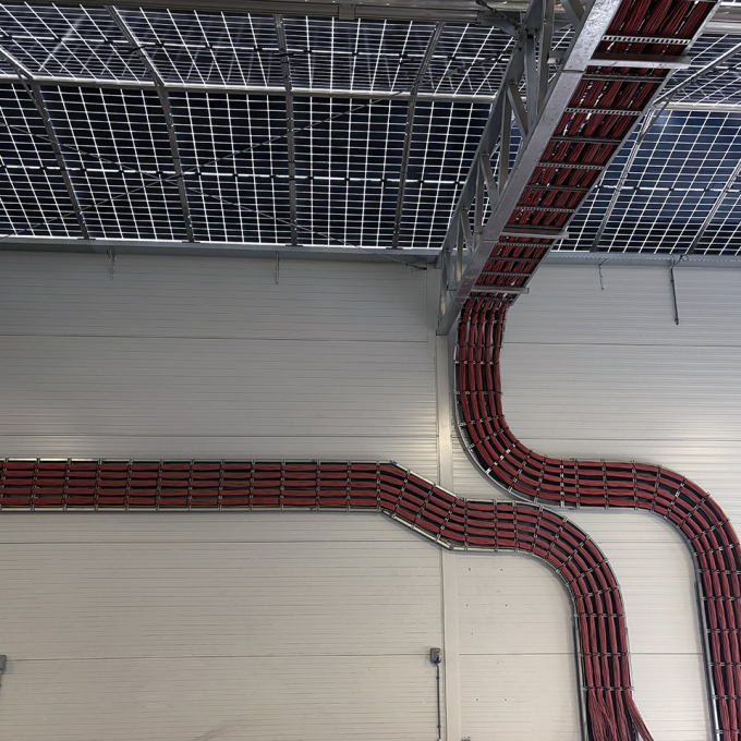 Het aansluiten van de zonnepanelen is een dienst die we aanbieden om onze klanten volledig te ontzorgen. Bij werken op hoogte is het vaak efficiënt dat wij ook de kabelgoten plaatsen en de stringbekabeling aanleggen. Deze werkzaamheden worden uitgevoerd door gecertificeerde installateurs. Bij de oplevering zorgen we voor een meetrapport waarin bijvoorbeeld de weerstand in het elektrische circuit is doorgemeten. Zo controleren we de juistheid van onze werkzaamheden en dragen we deze betrouwbaar over aan de installateur.