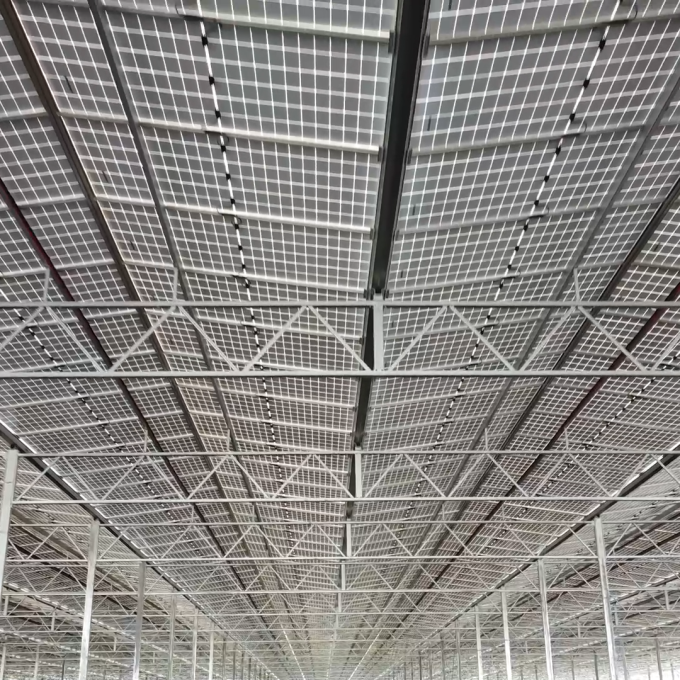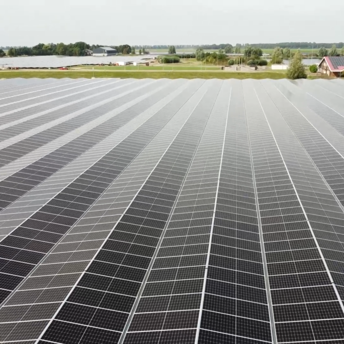In tegenstelling tot de openveld opstellingen in de omgeving biedt deze grootschalige PV installatie een toegevoegde waarde als droge en schaduwrijke parkeergelegenheid. De toepassing van zonnepanelen in de overkappinig biedt voldoende lichttoetreding om kunstmatige verlichting te voorkomen en geeft de overkapping een hoogwaardige uitstraling. Ook hier is de combiatie gevonden om duurzame energieproductie te combineren met een toegevoegde waarde aan de beschikbare ruimte.