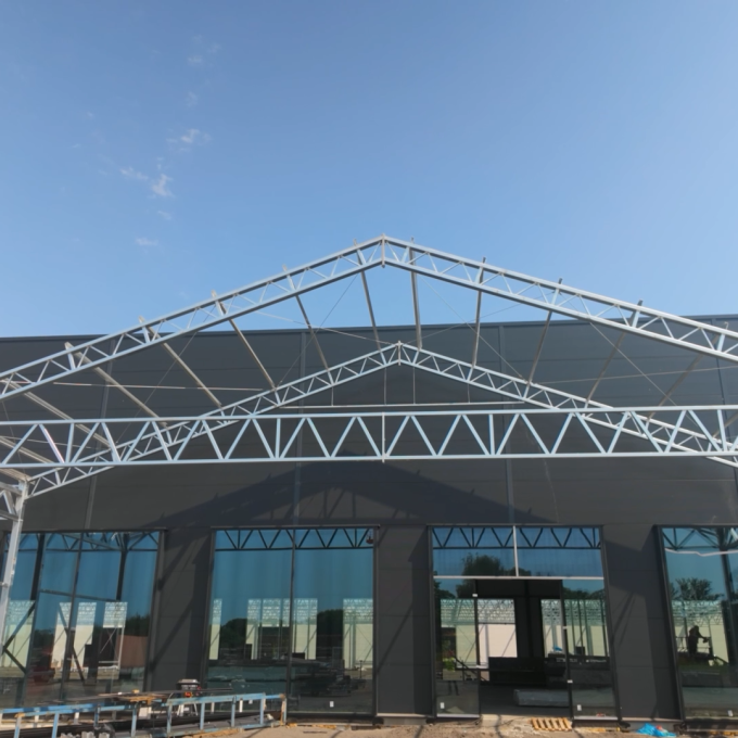Bij Camperstalling Henk Pen wordt optimaal gebruik gemaakt van zonnepanelen als overkapping. Vier afdelingen met ieder een eigen gebruiksfunctie zijn met brandwanden van elkaar gescheiden. De constructie is aanrijdveilig uitgevoerd en het zonnepanelen dak is inclusief goten en afvoeren gerealiseerd.