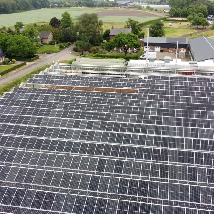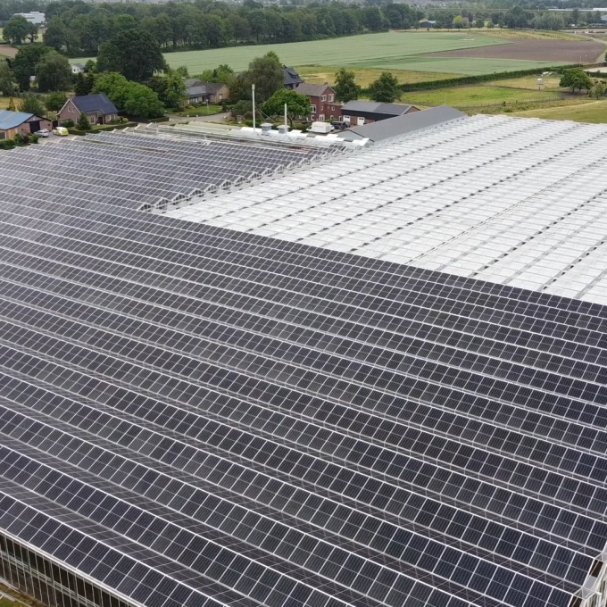 De kasrenovatie aan de Grote Blerickse Bergenweg combineert zonne-energie met de teelt van gewassen.
